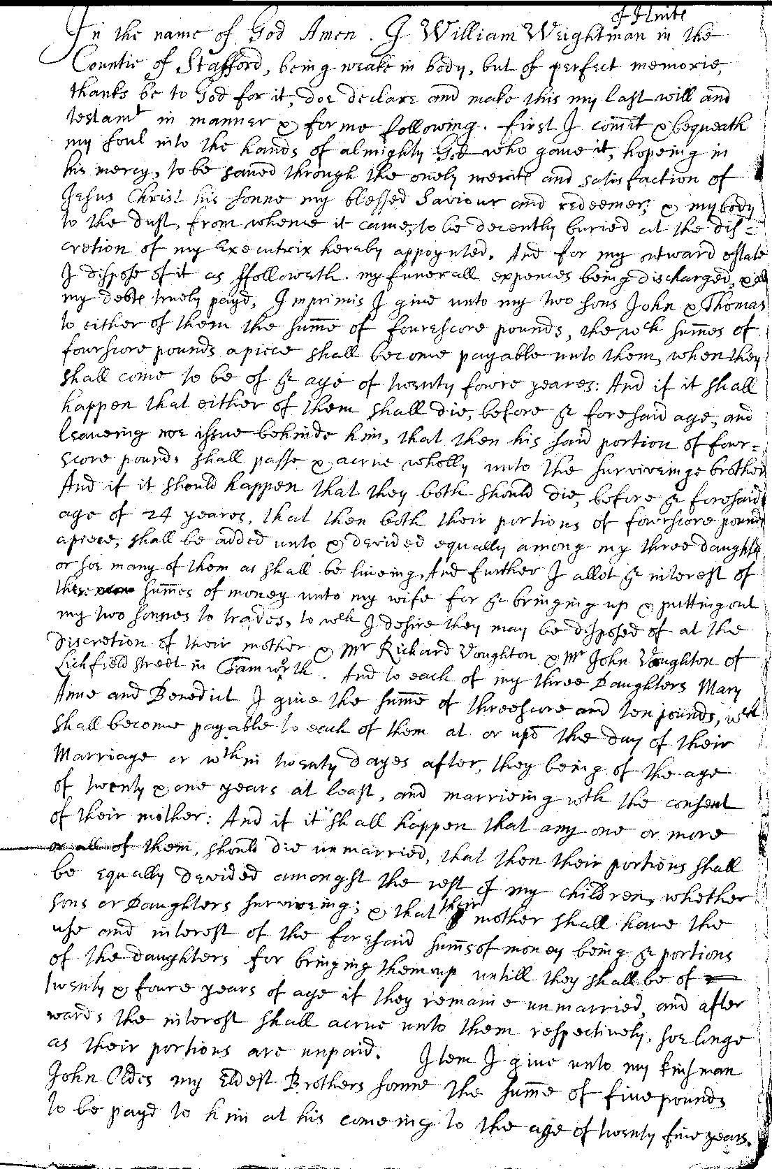 The original will of William Weightman of Hints